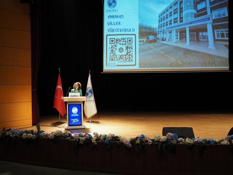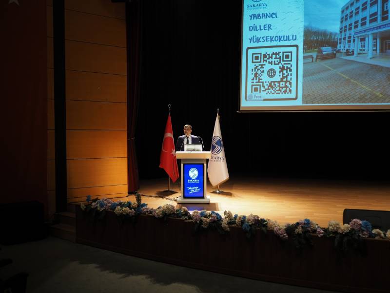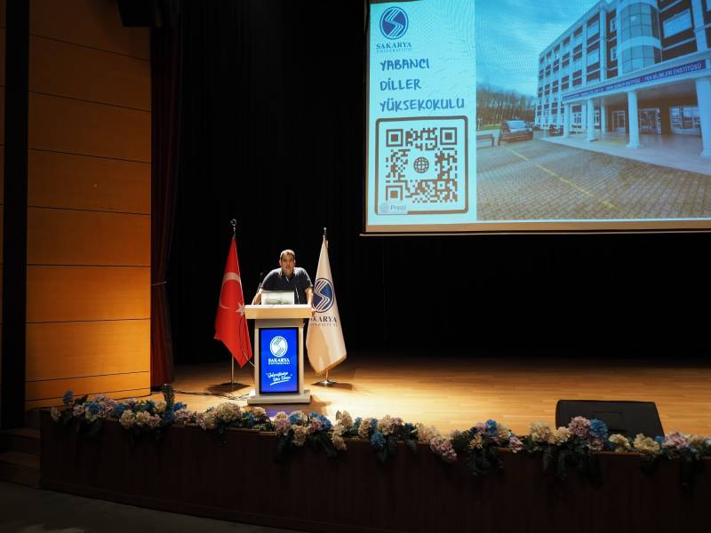 Following her speech, Assoc. Prof. Dr. Halil İbrahim Balkul, Director of the School of Foreign Languages, took the stage and delivered a speech emphasizing the importance and necessity of learning a foreign language. Balkul highlighted the advantages of effectively using English, both in social life and in the context of career development. Subsequently, Lecturer Halil İbrahim Gündüz, Head of the Department of Foreign Languages, discussed methods and techniques that would enhance the efficiency of language learning. He reminded students that without extracurricular activities, their educational progress would not reach the desired level.