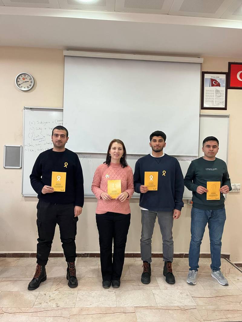 Bizler de Sakarya Üniversitesi Yabancı Diller Yüksekokulu olarak KAÇUV’un çocukluk çağı kanserine dikkat çekmek için her sene 15 Şubat haftasında farkındalık ve bilinçlendirme çalışmalarına destek olmaya çalışıyoruz. En önemli amacımız çocukluk çağı kanseri hakkında kamuoyunda farkındalık yaratarak, hastalıkta erken teşhisin önemine dikkat çekmektir. Çocukluk çağı kanserlerine dair farkındalığı arttırmak için çevremize “Sence sarı ne demek?” diye sorduk ve 15 Şubat günü sosyal medya hesaplarımızda fotoğraflarımızı #sarıyıfarket etiketiyle paylaşarak bu mücadelede yerimizi aldık.
